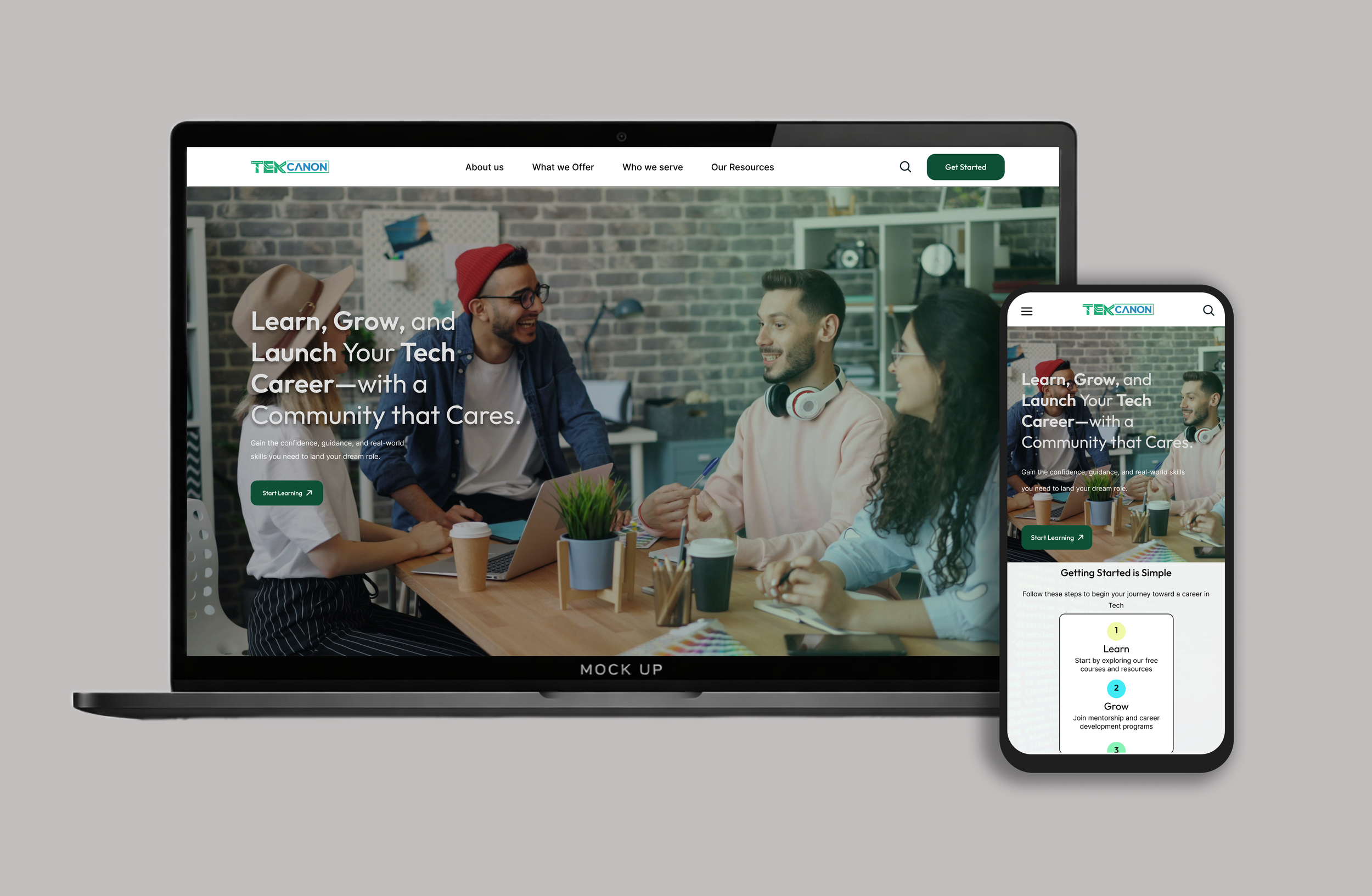 A nonprofit website designed to support adults transitioning into tech careers.