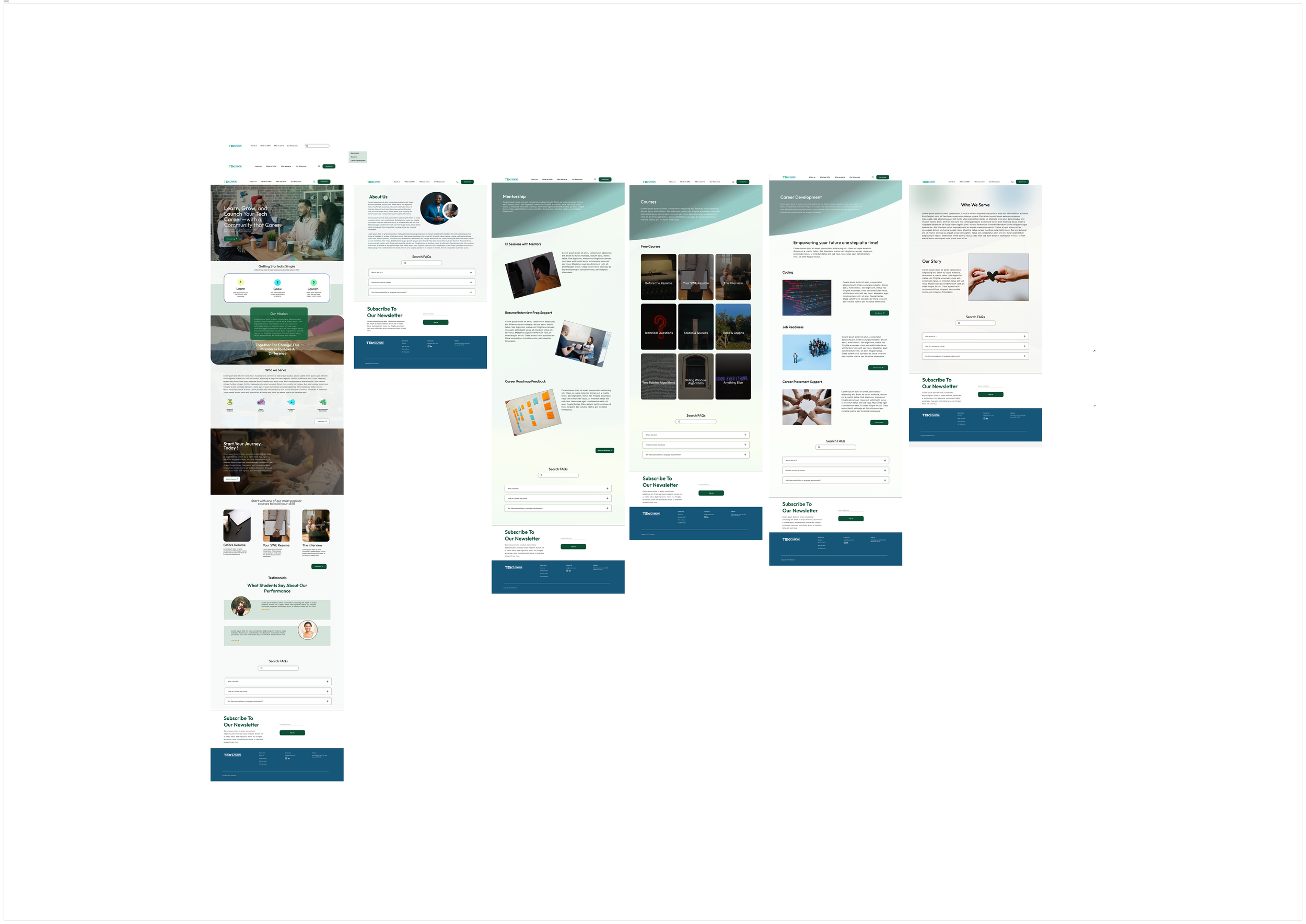 Through continuous iteration, I refined the design by creating a more mature interface, organizing information more clearly, and simplifying navigation to better support career switchers and underserved learners exploring TekCanon’s resources.